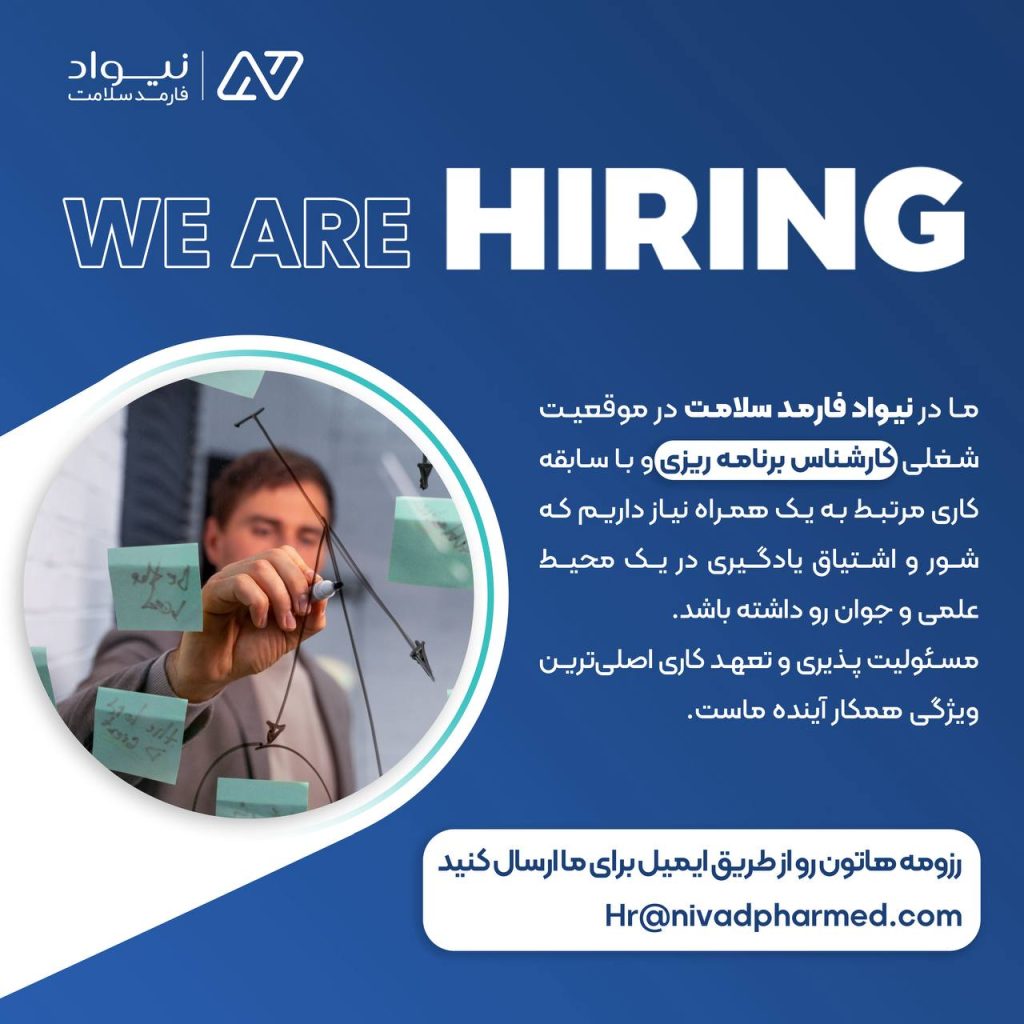 توسعه اثر گذاری توانمندی با تو آغاز می شود... فرصت های شغلی شرکت نیواد فارمد سلامت جهت تکمیل کادر خود از افراد واجد شرایط برای همکاری در موقعیتهای شغلی زیر دعوت به عمل میآورد . ارسال رزومه